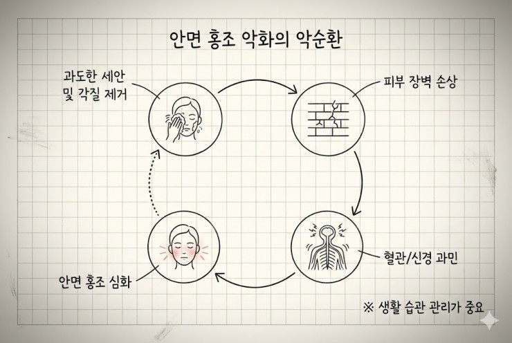 이 글을 통해 여러분이 겪는 안면홍조의 숨겨진 기전을 이해하고, 현명하게 피부 진정을 돕는