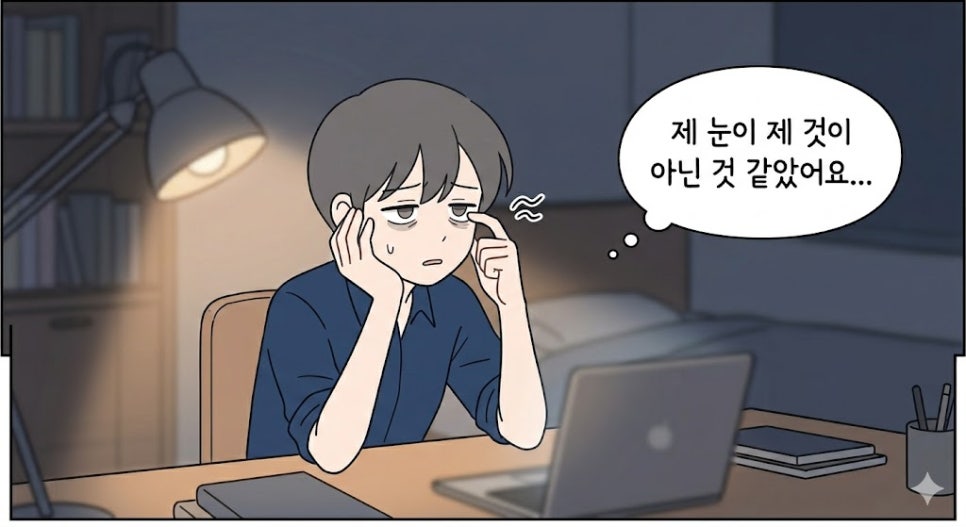잠까지 설쳤다고 하셨습니다. "제 눈이 제 것이 아닌 것 같았어요"라는 말씀에서 그 분의 고통이 고스란히 느껴졌습니다.