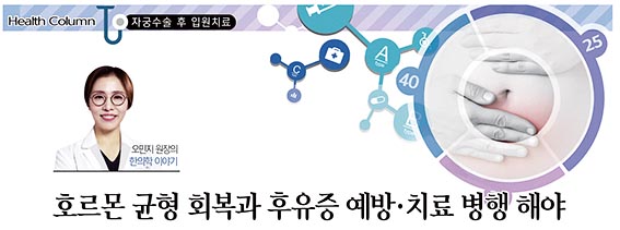자궁절제술 후 환자들은 다양한 후유증을 완화하고, 여성 질환의 원인 해결을 위해 꾸준한 치료가 필수적이며 또한 생활 관리가 필요하다.