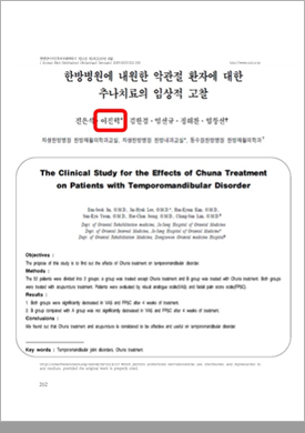 2009년 척추신경추나의학회에서 발표한 논문을 통해