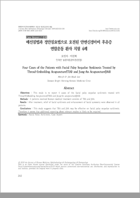본원에 연합운동을 동반한 안면신경마비 후유증 환자에게 안면정안침, 매선요법을 시행한 후