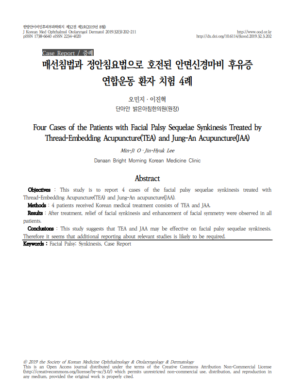 연합운동 증상이 유의하게 개선되는 결과를 한의학계 최초로 보고하였습니다.