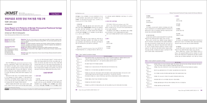 한방치료로 호전된 양성 자세 현훈 치험 2례